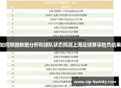 通过综合分析历史数据、球队当前竞技状态、阵容变化以及对手表现等多个因素,我们可以更加精准地预测上海足球赛事的胜负结果。数据分析不仅为我们提供了客观的决策依据,还能够帮助我们从多个角度全面理解比赛的动态和潜在变量。